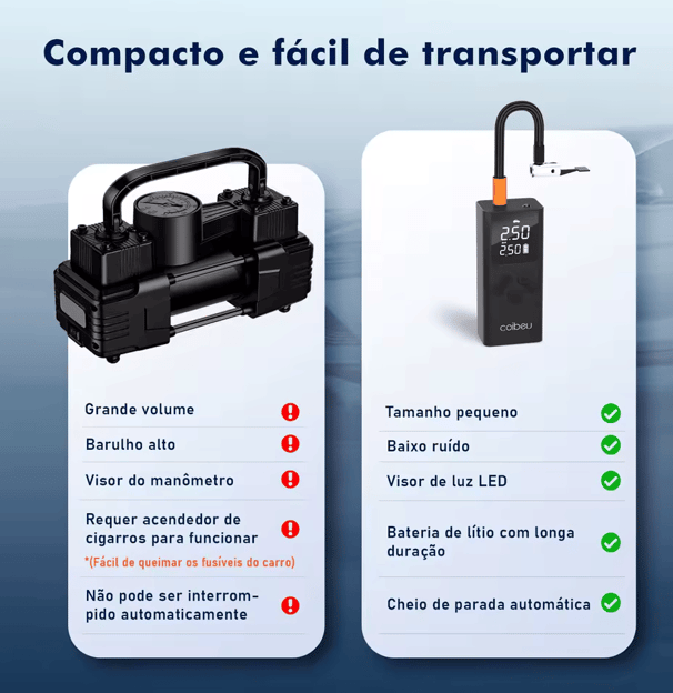 É nesse momento que um simples equipamento pode fazer toda a diferença: o Mini Compressor Portátil.